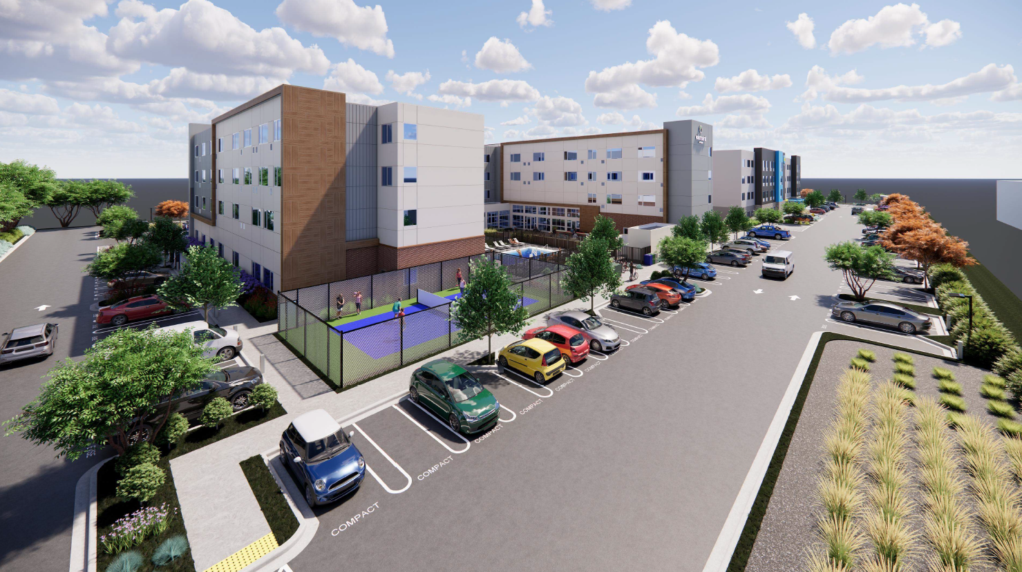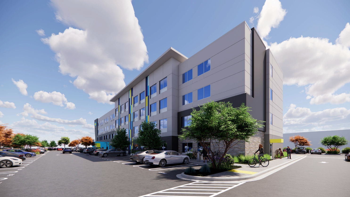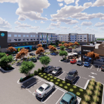 Development of two four-story hotels with 114 and 123 hotel rooms respectively, a 10,178 square-foot restaurant/retail building, 310 parking stalls and related site improvements.