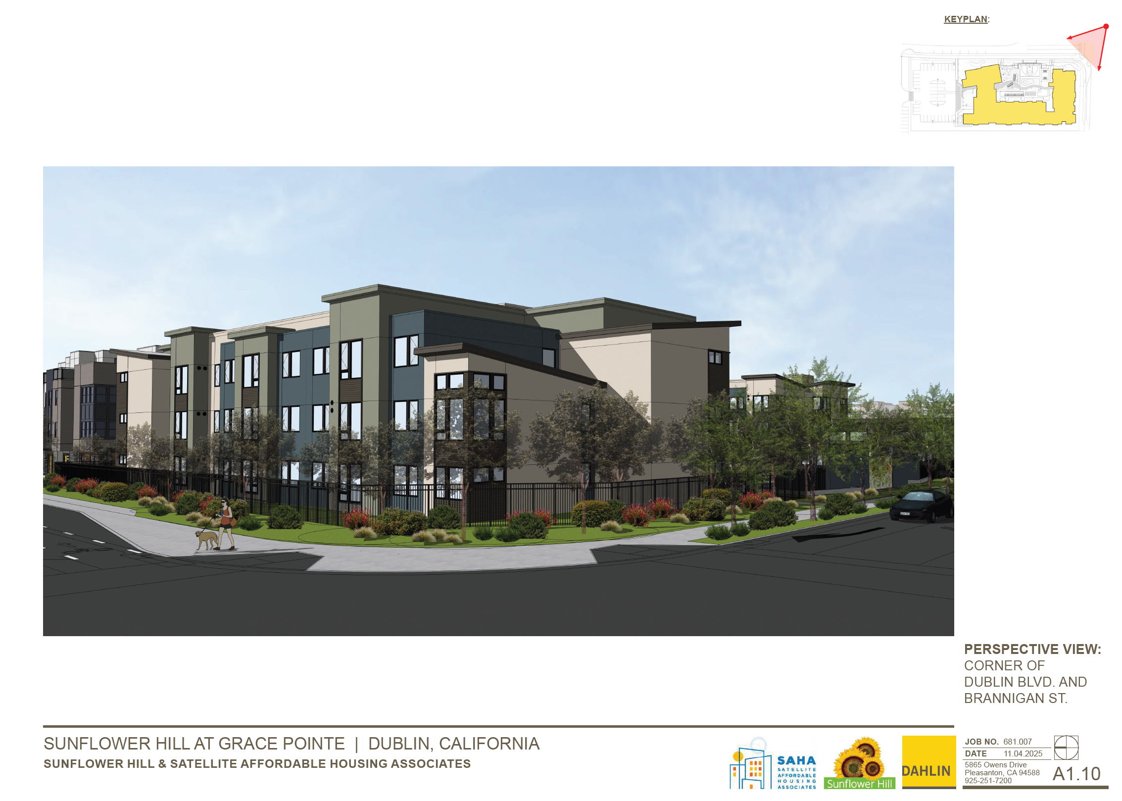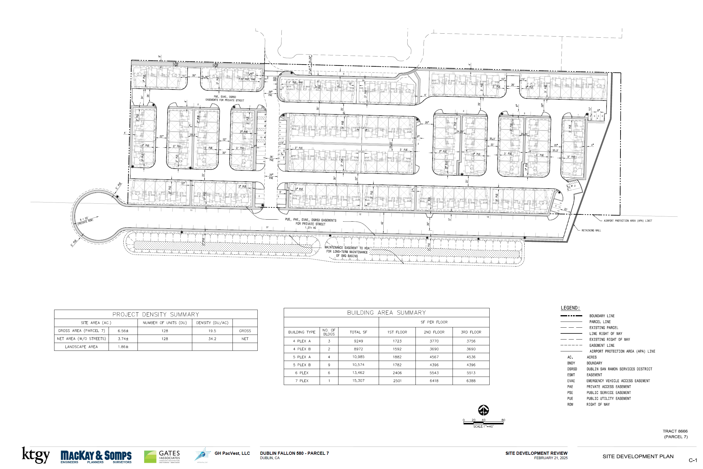 The Dublin Commons project is the redevelopment of the Dublin Place Shopping Center as part of implementing the Downtown Dublin Preferred Vision. Dublin Commons is a mixed-use project of up to 275,000 SF of retail (consisting of 155,000 SF of new retail and 120,000 SF of existing retail), 535,000 SF of Research and Development (Life Science), 1,510 multifamily residential units and a new Town Square/park. The project entitlements included are a Vesting Tentative Tract Map and a Development and Community Benefit Program Agreement (Application No. PLPA-2024-00047), Site Development Review Permit (PLPA-004036-2024) and Heritage Tree Removal Permit (PLOC-004052-2024).
