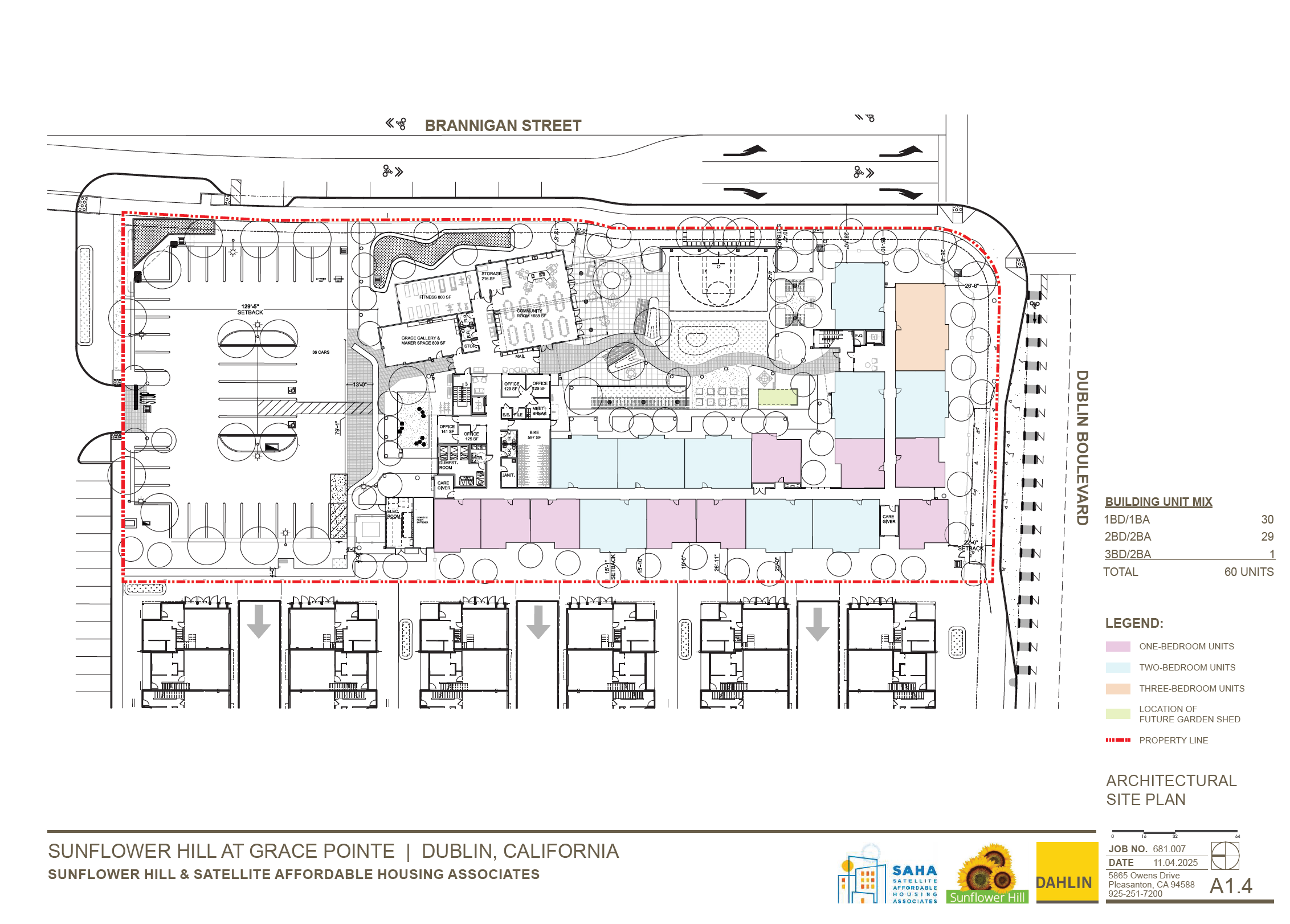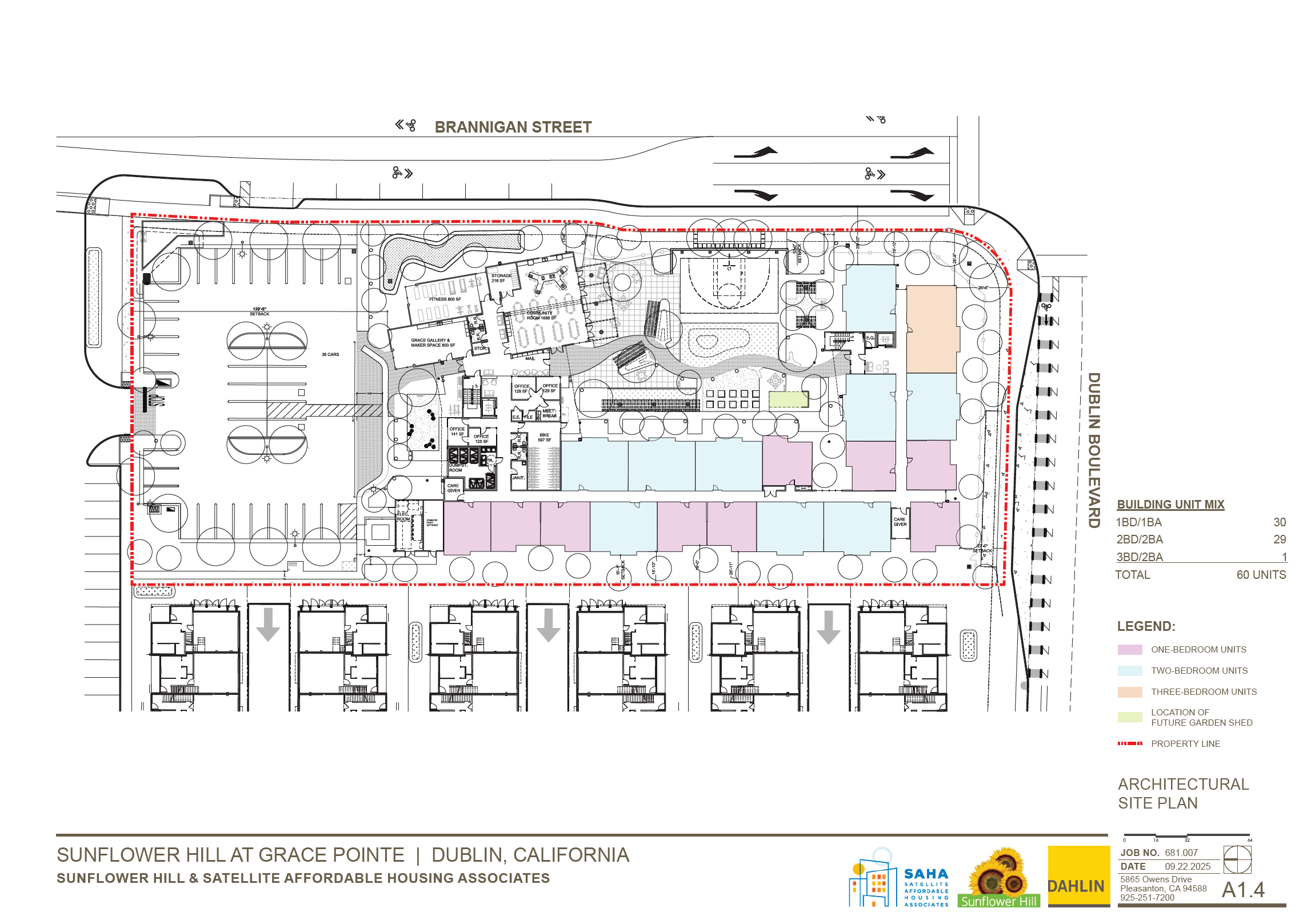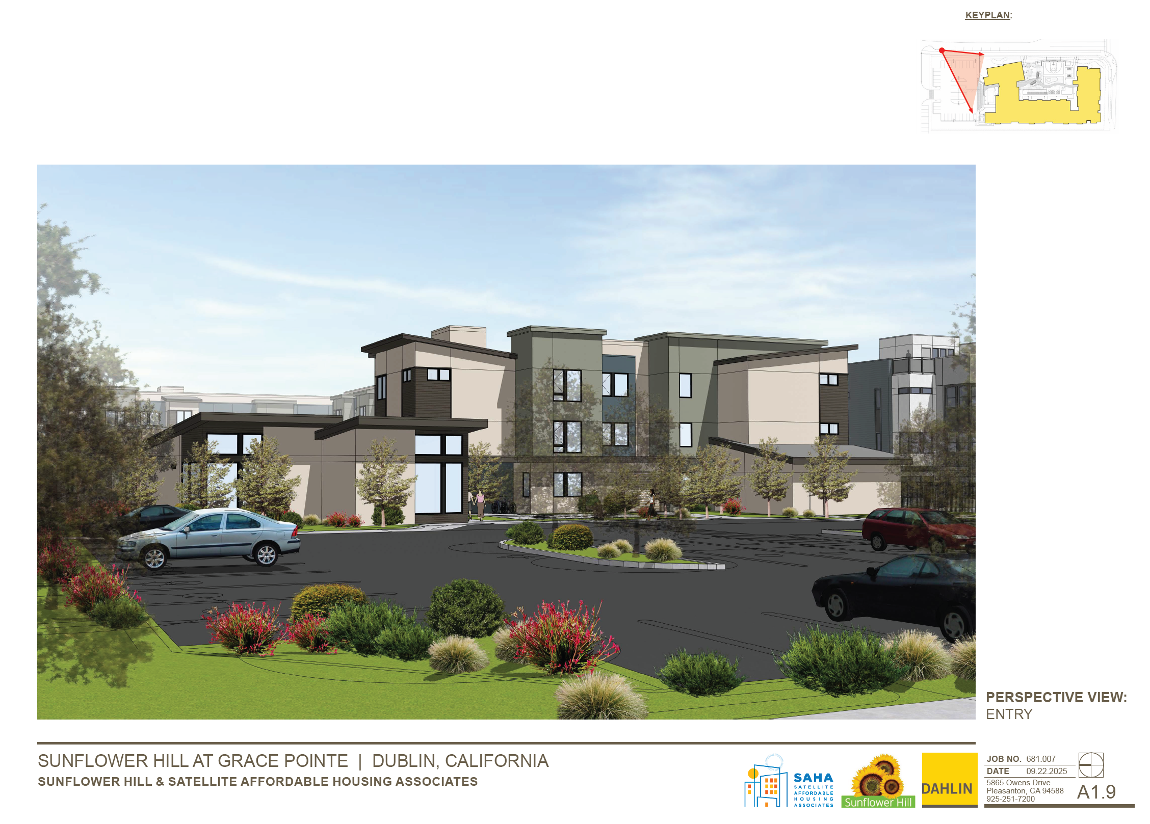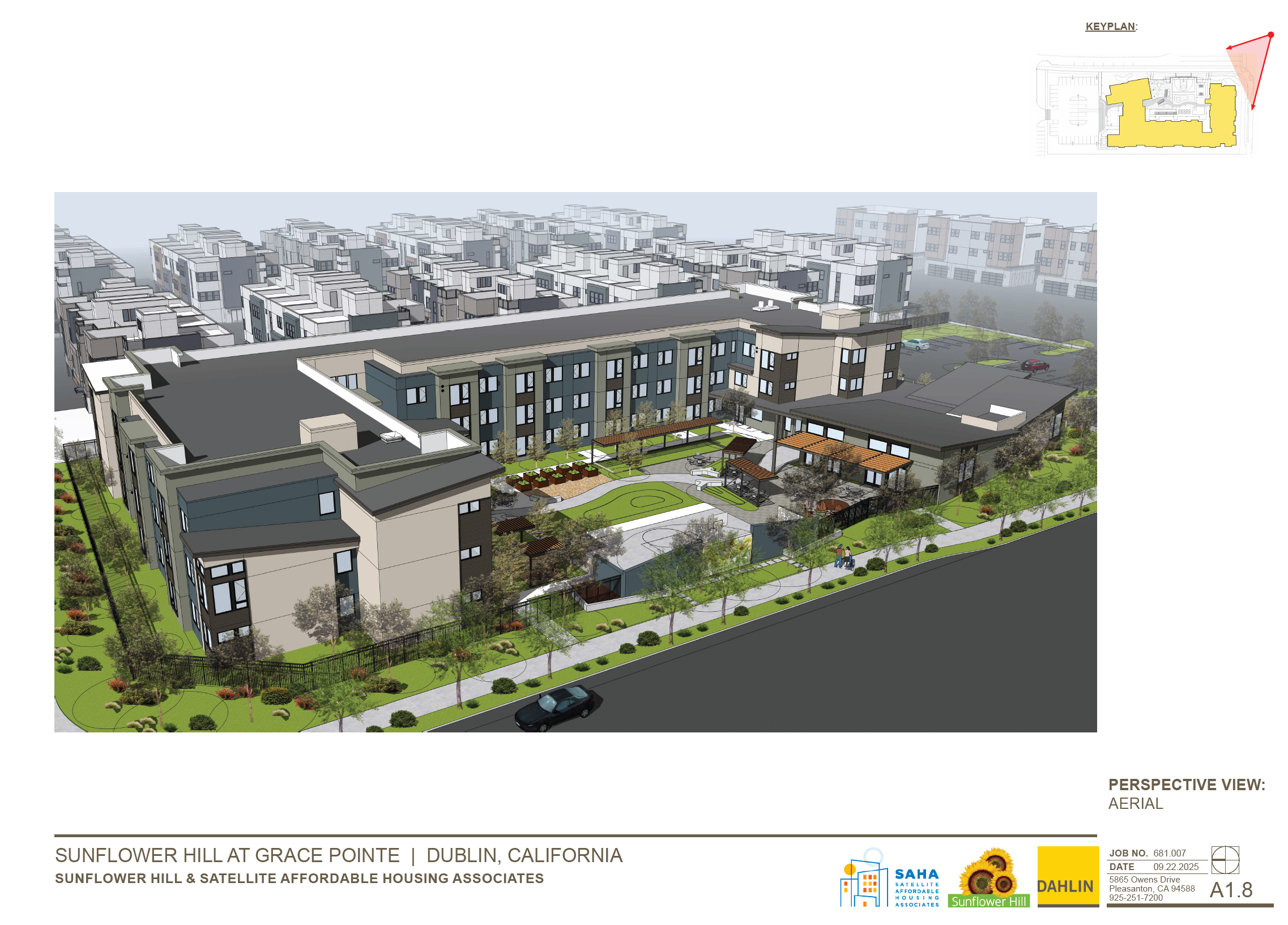 Sunflower Hill at Grace Pointe is a 60-unit apartment community for people with intellectual and developmental disabilities. The proposed Site Development Review Permit includes a three-story apartment building, indoor and outdoor activity areas and associated site improvements.