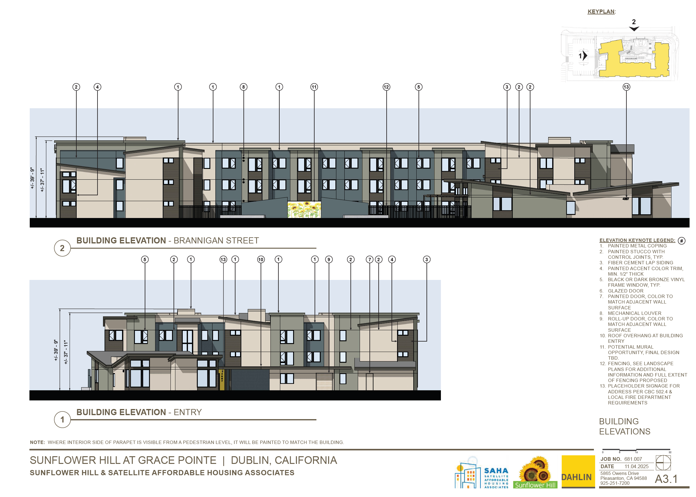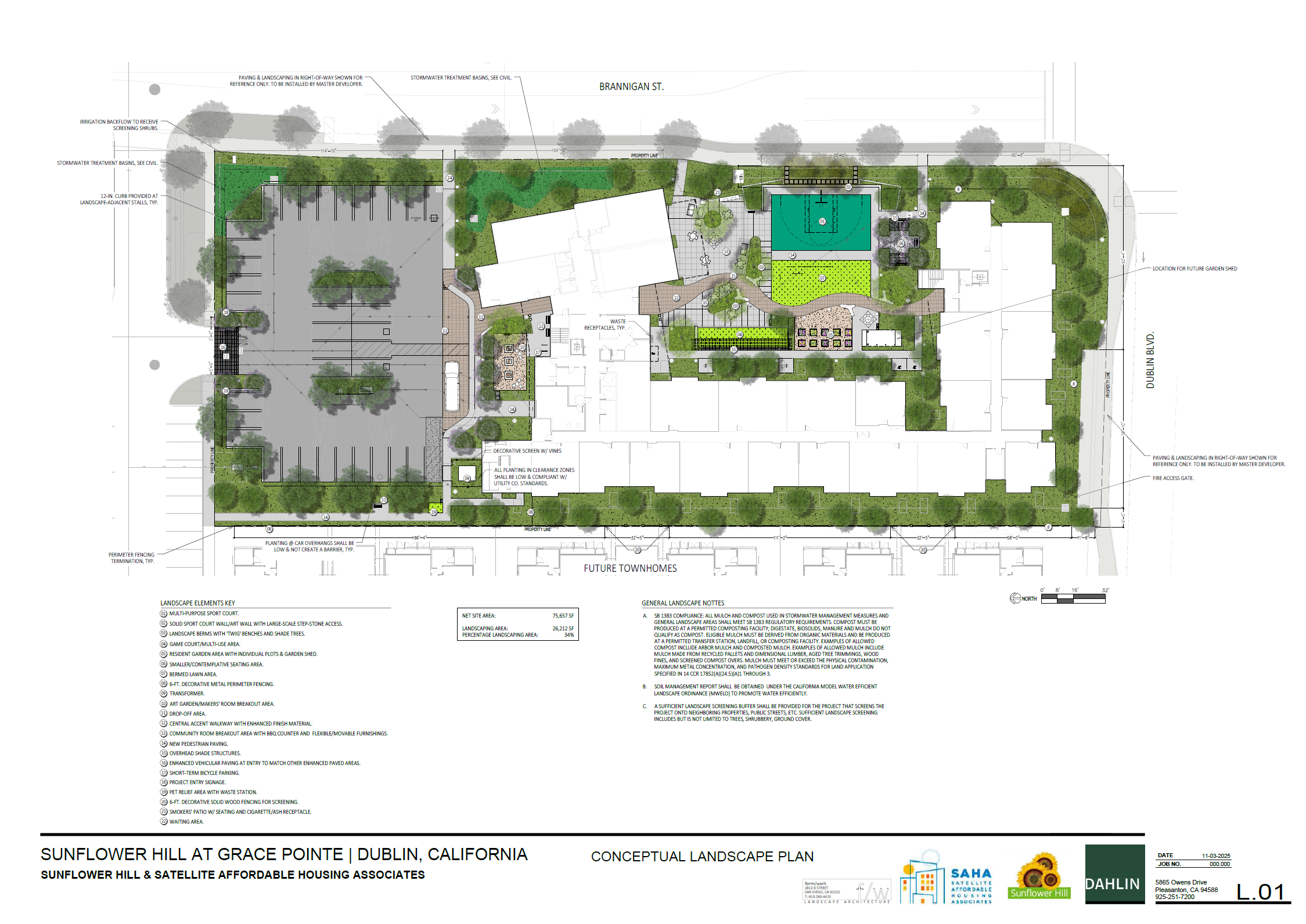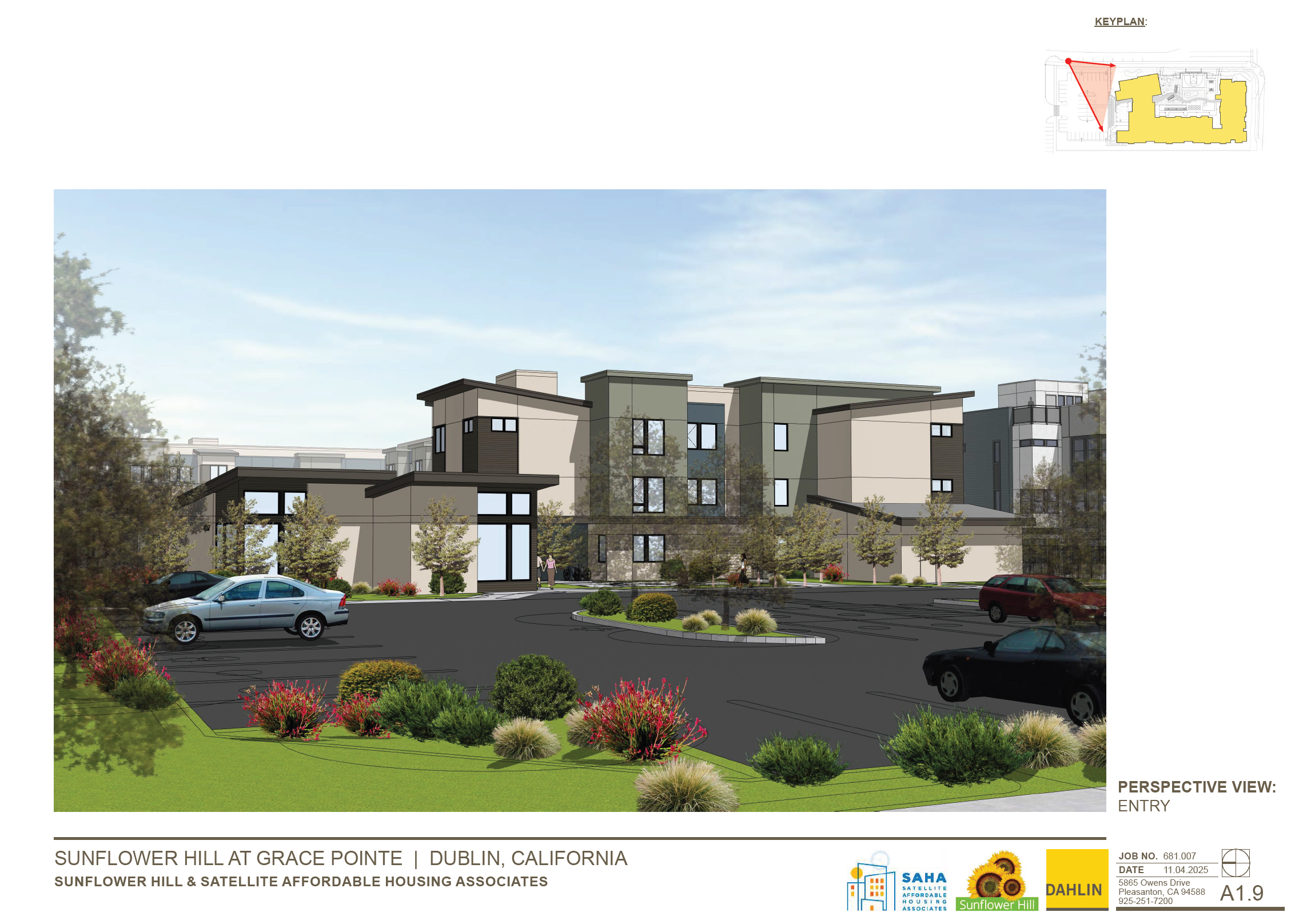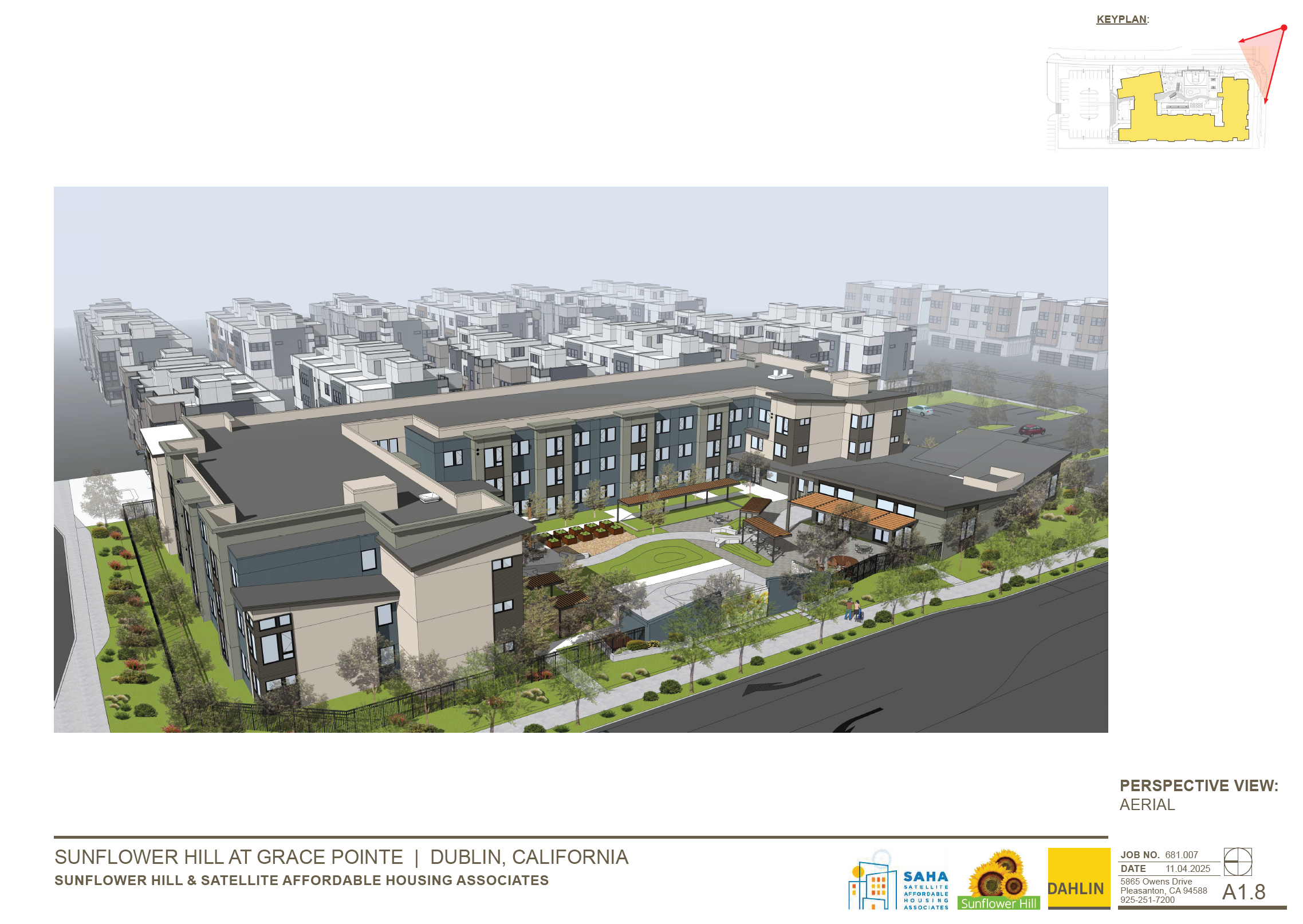 Sunflower Hill at Grace Pointe is a 60-unit apartment community for people with intellectual and developmental disabilities. The proposed Site Development Review Permit includes a three-story apartment building, indoor and outdoor activity areas and associated site improvements.