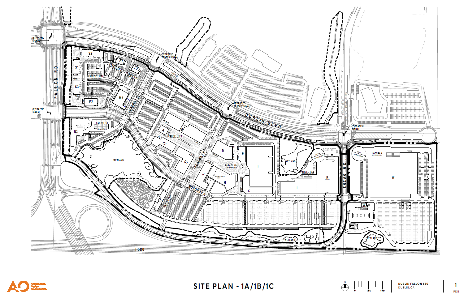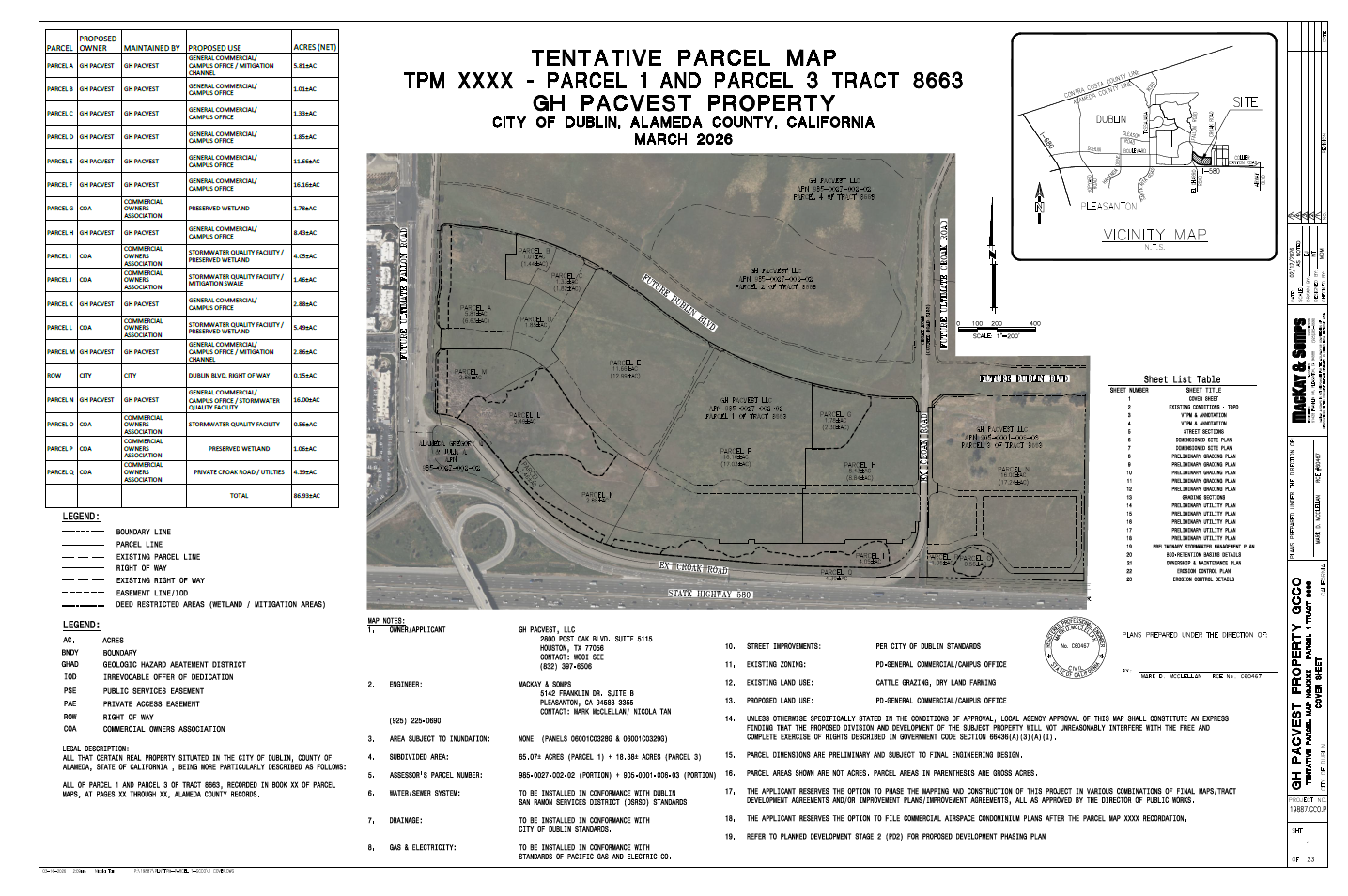 Vesting Tentative Parcel Map application for PA-1 of The Dublin Centre project. The project includes the subdivision of a 23.7-acre site to create two parcels south of Dublin Boulevard.